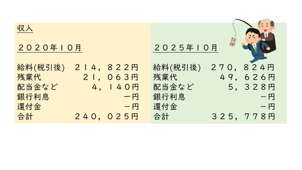 貯金を始めた5年前の家計簿も左に載せておりますので、収支の変化も参考にご覧ください。