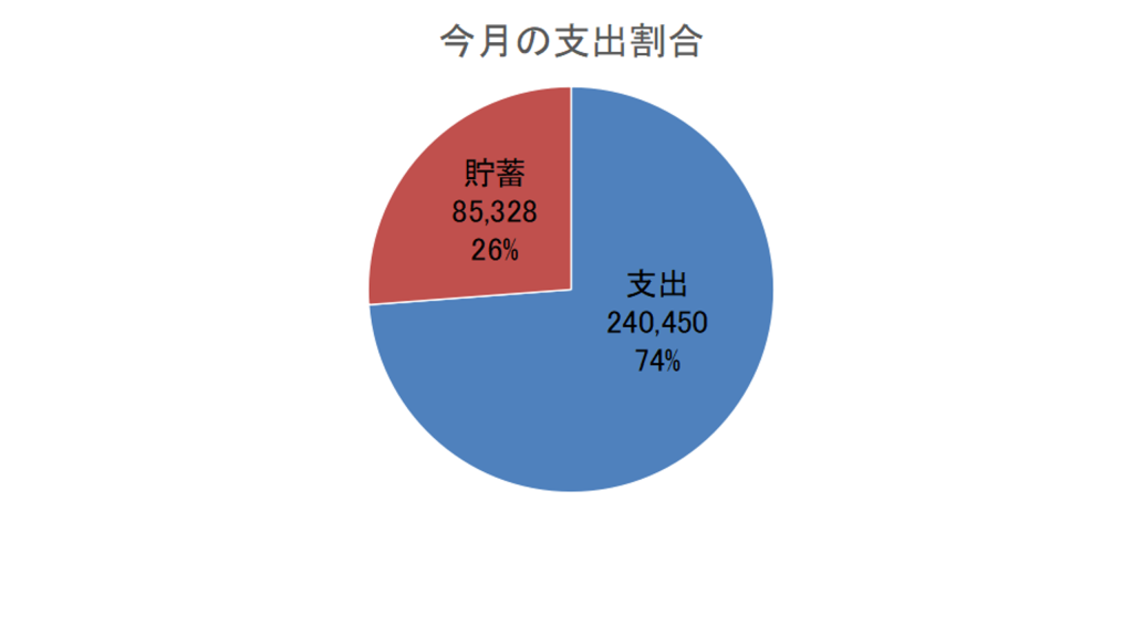 10月の給料からの貯蓄額は85,328円となり、貯蓄率は26%となりました。