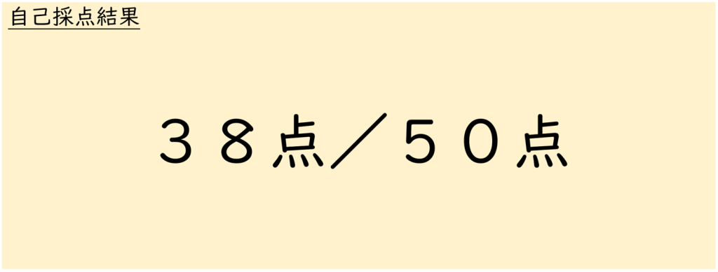 お待ちかねの自己採点結果ですが、アガルートさんの解答速報で採点させていただいたところ、38点という結果となりました。