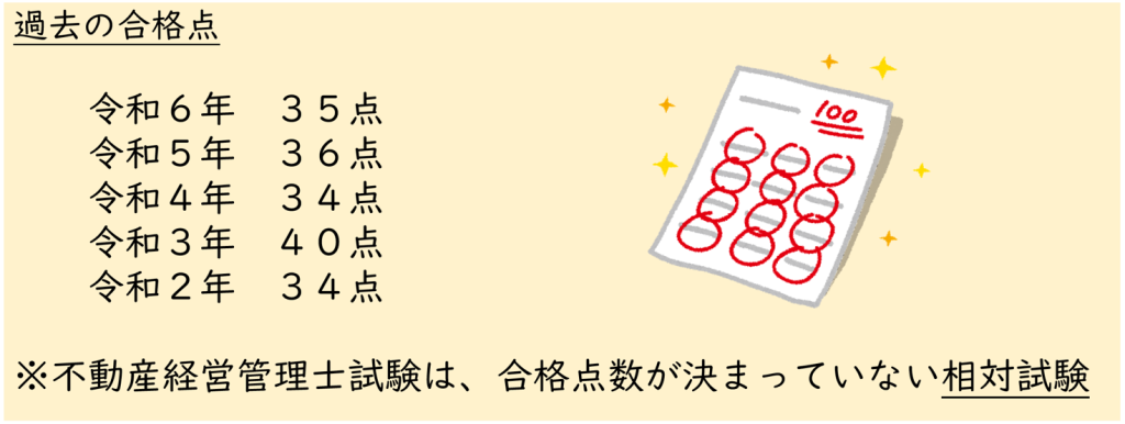 賃貸不動産経営管理士試験は、行政書士試験と違って「合格点」が決まっておらず、そのときの試験の難易度などによって合格点数が異なります。