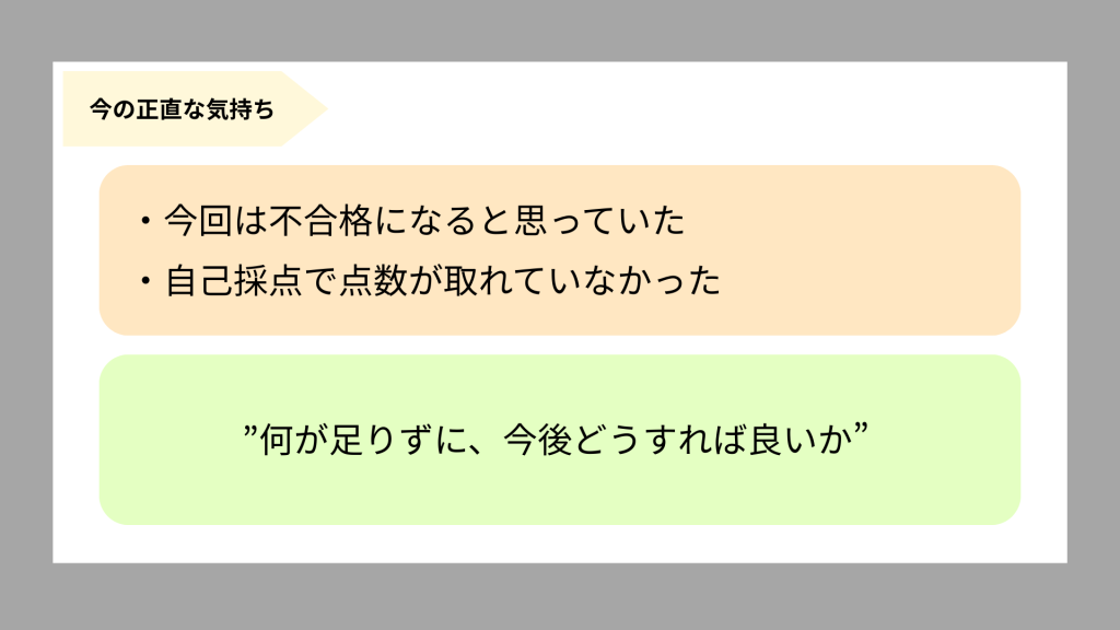 正直、今回は不合格になると思っていました。