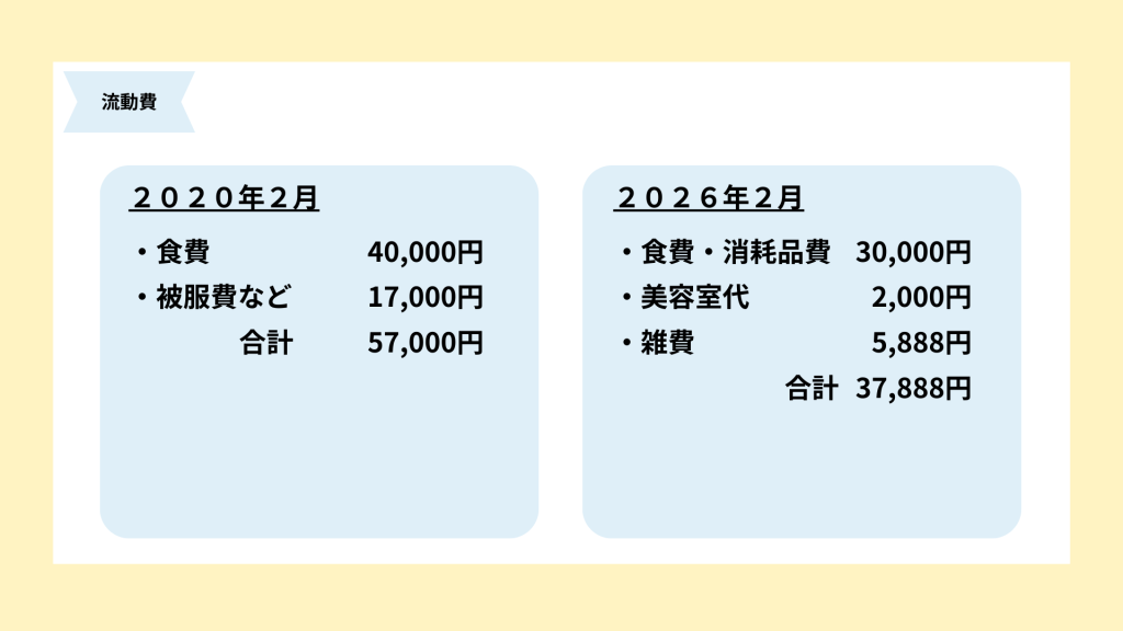 食費・消耗品費30,000円、美容室代2,000円、雑費5,888円です。