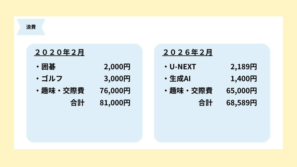 U-NEXT2,189円、生成AI1,400円、趣味・交際費65,000円です。
