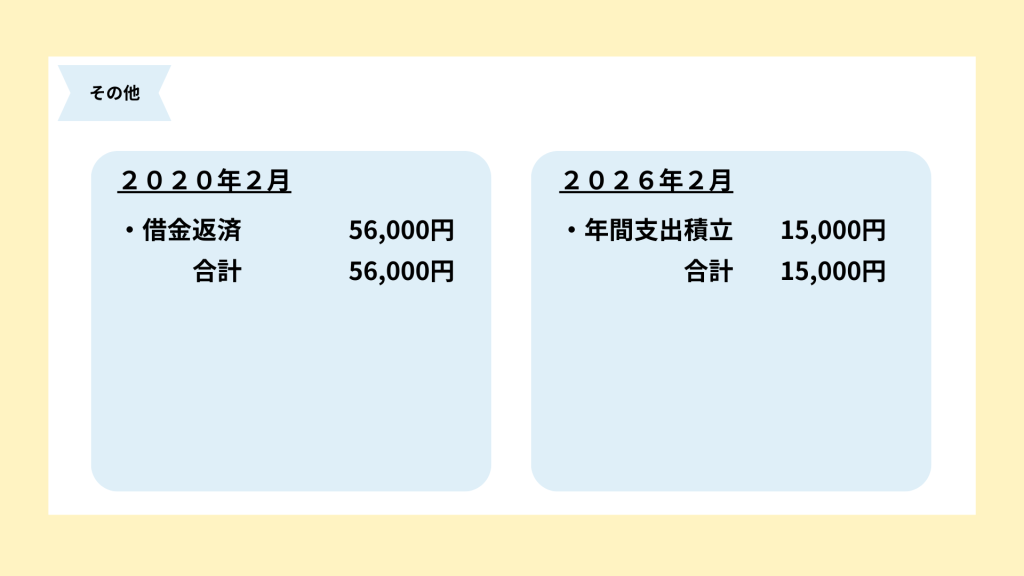 年1回や2回などの不定期で支払う費用として、15,000円を確保しておきます。